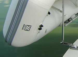 2" nylon web strap used to help lift the dingy into the stowed position. Can be used in conjunction with a pulley system for easier lifting. Prevents abrasion of the tube. |