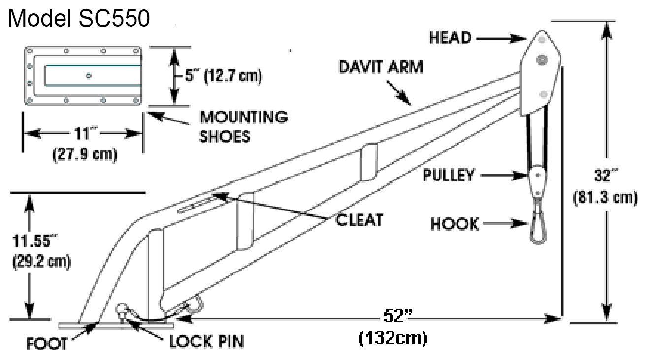 Adds 6" of additional height under the mounting shoe of the davits. For Model SC550 Removable Davits. |